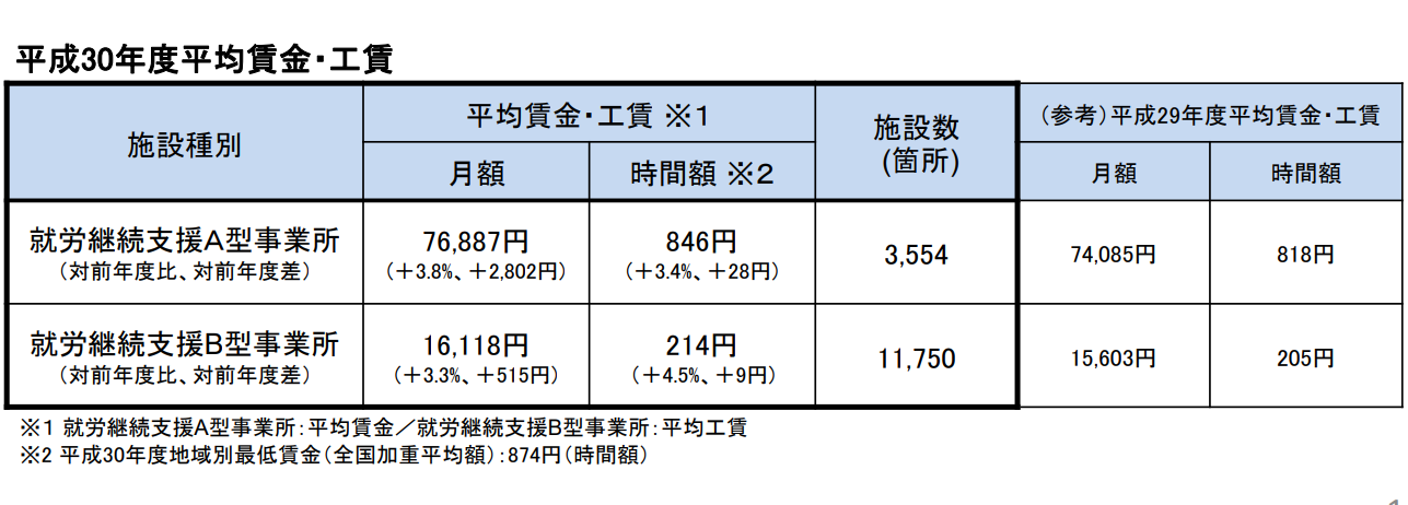 【出典】厚生労働省「平成30年度工賃(賃金)の実績について」