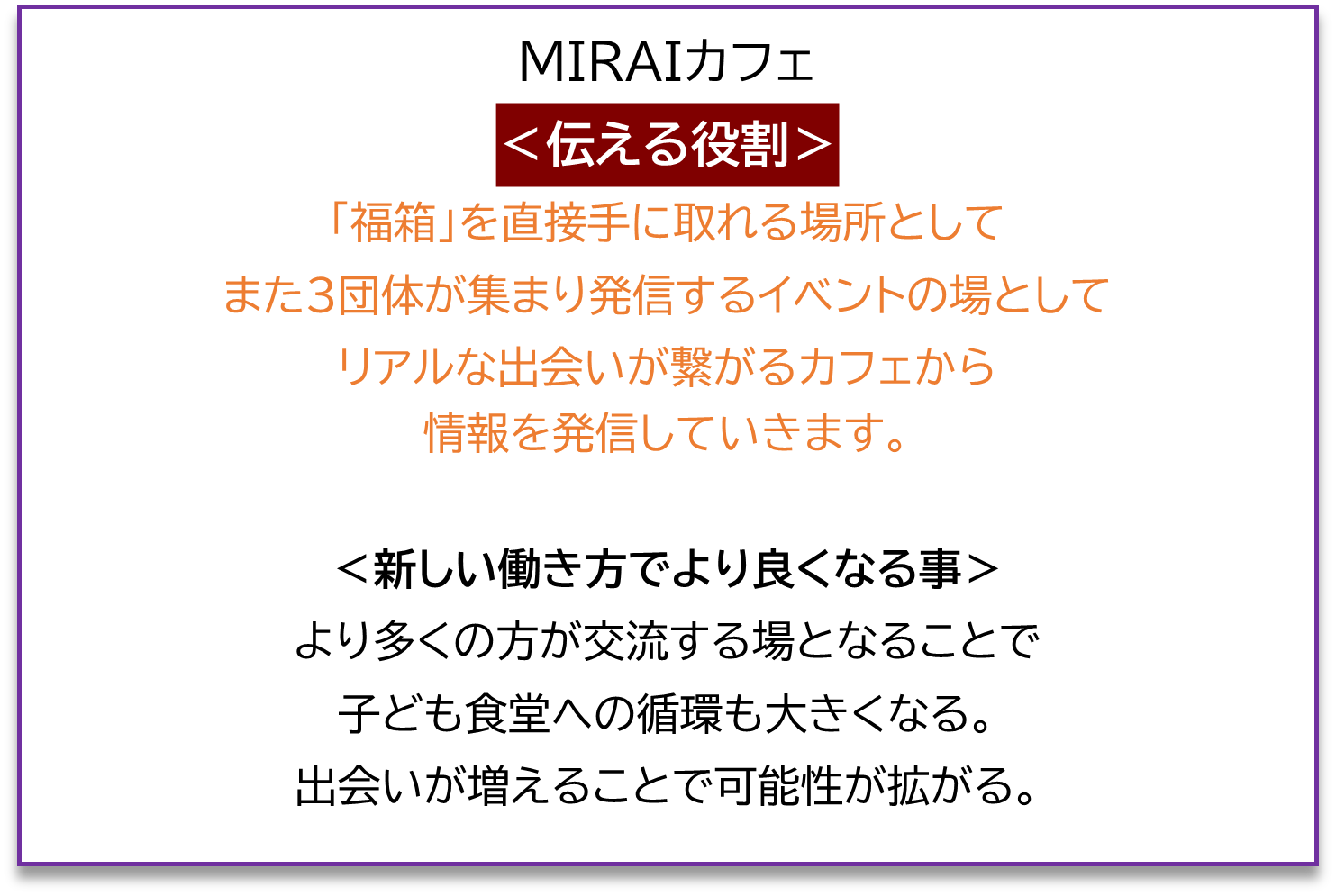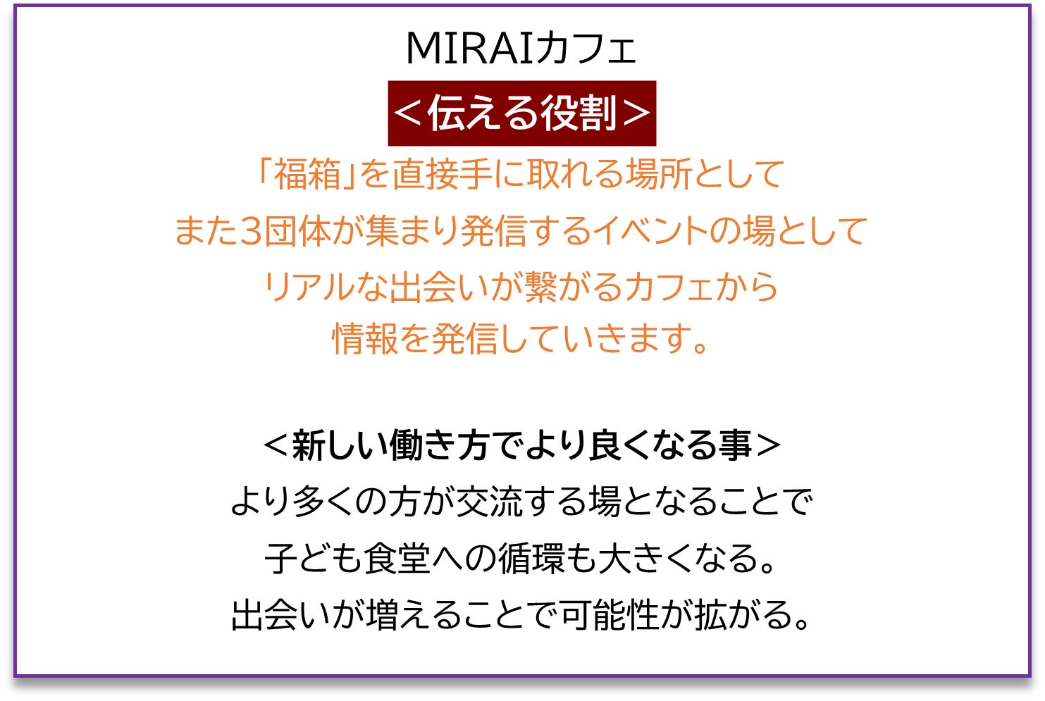 この機会に繋ぐカフェ<MIRAIカフェ>に遊びに来てください。