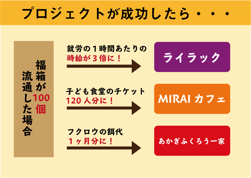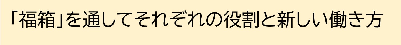 今回の挑戦は、自分たちだけではカタチにできないことを、異業種と協力し合って「福箱(フクバコ)」を開発し、新しい働き方を開拓することで各団体の課題をクリアしていくプロジェクトです。
