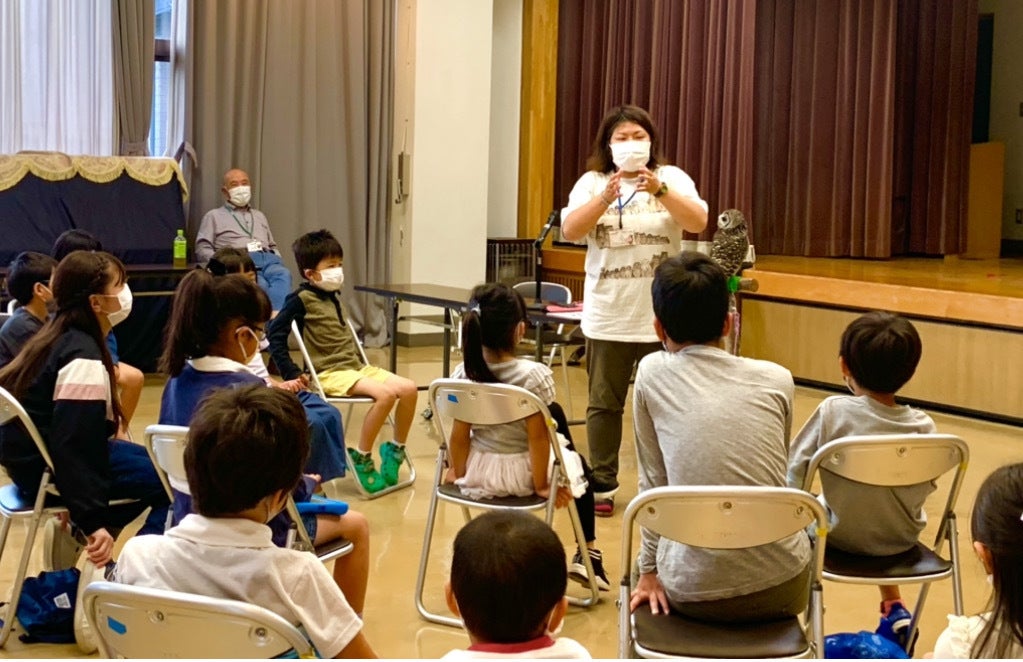 本物のフクロウと一緒にふくろう講座を公民館で開催