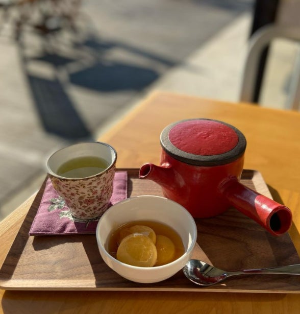ライラックで作ったクッキーを、MIRAIカフェでドリンクセットとして提供し、