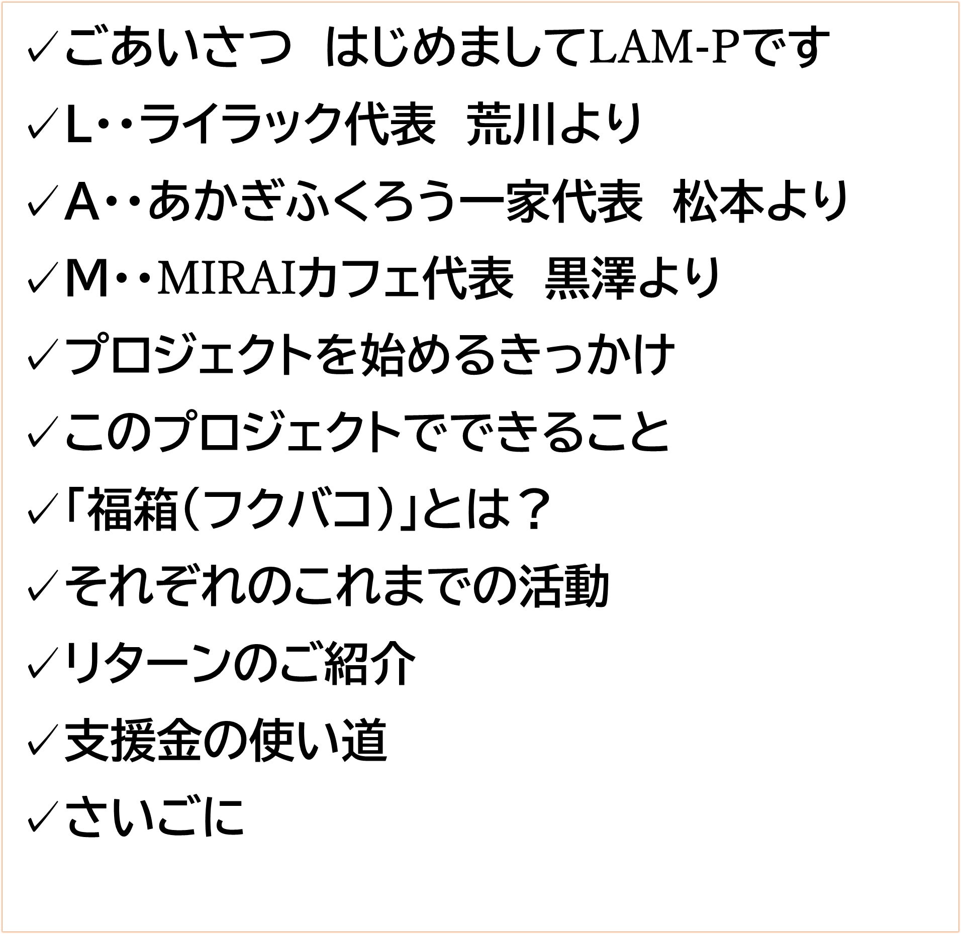 ライラック(L)×あかぎふくろう一家(A)×MIRAIカフェ(M)によるプロジェクト(P)