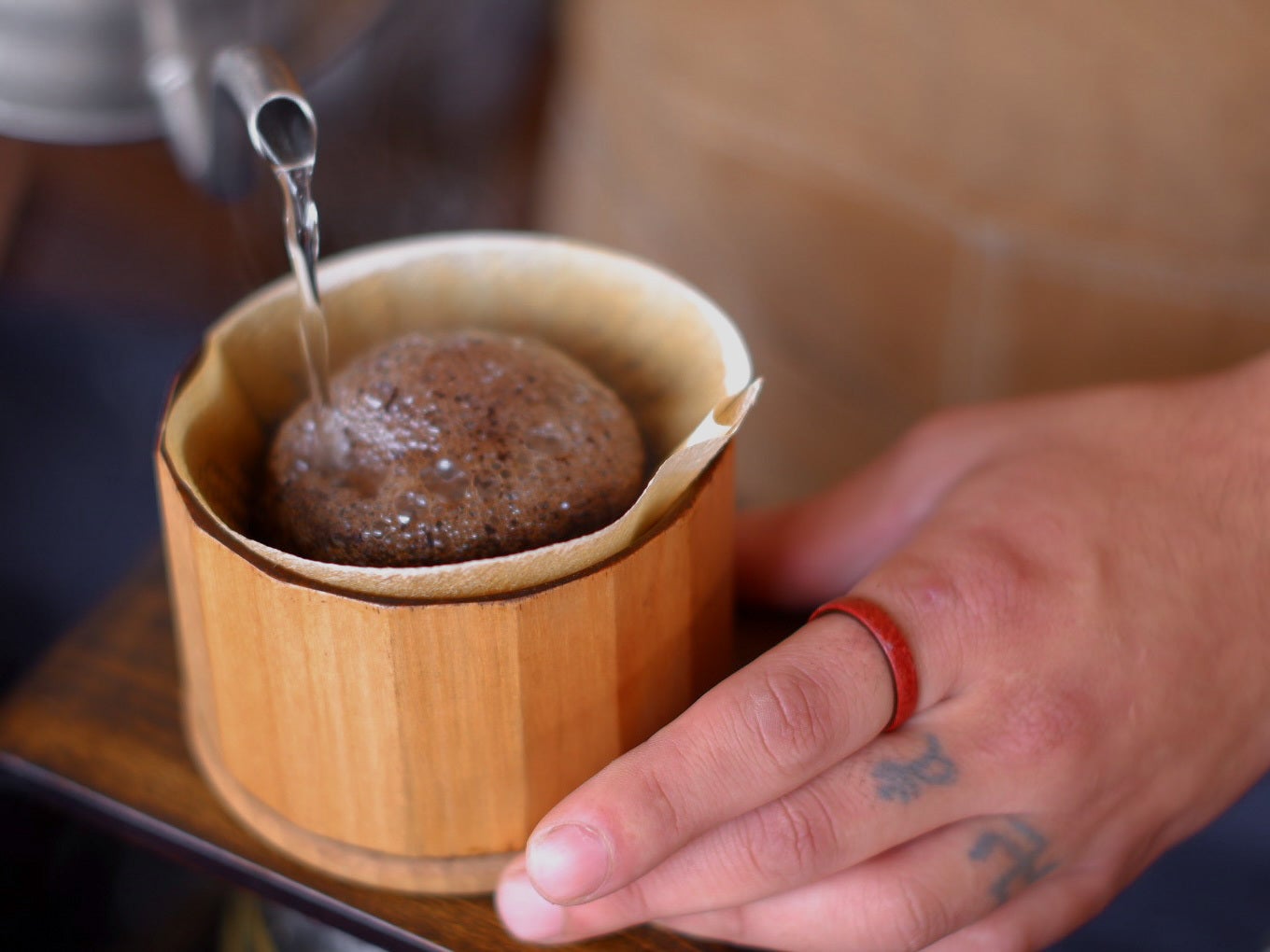 日本の伝統工芸である「曲げわっぱ」とよく似た製法の木の指輪です。