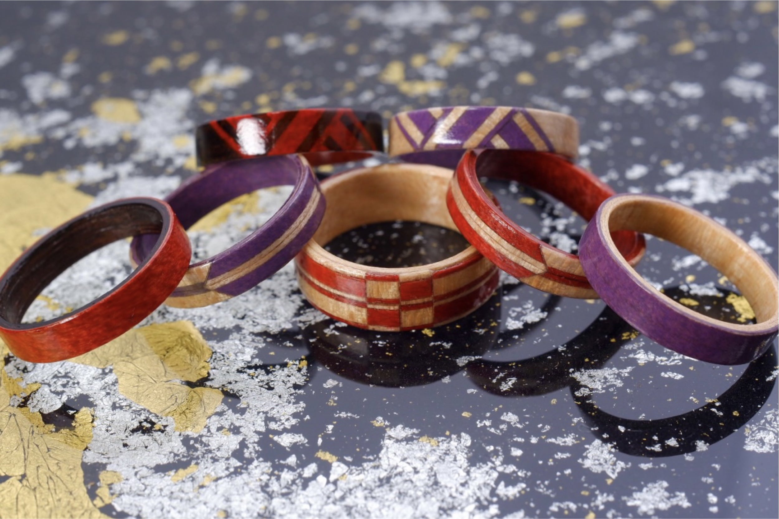 寄木で和柄な木のゆびわ