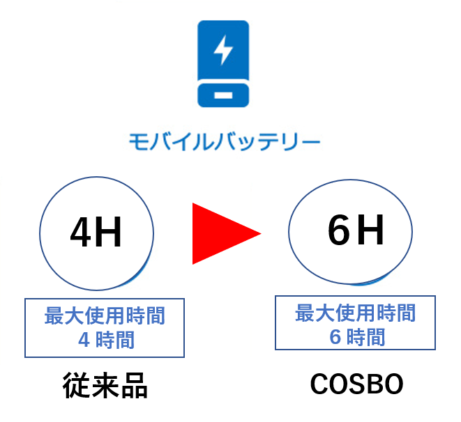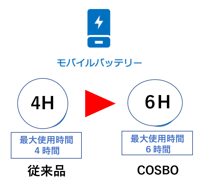 2.超軽量モバイルバッテリー付きで6時間稼働