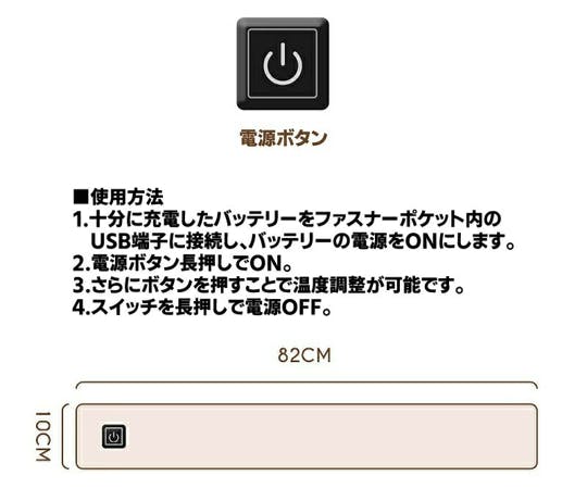 ヒートマフラーに付属のUSBケーブルを接続し、ワンプッシュですぐに使用できます。
