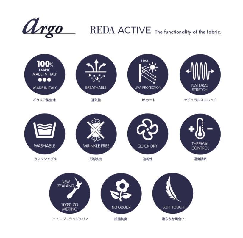 ウールの欠点と言えばチクチクすることと洗うと縮むことですが、REDA - REDA ACTIVEがウールの弱点を克服しました。SUPER 120'S のニュージーランドメリノを使用しており、メリノウールの機能を最大限に活かした、全くチクチクしない、洗えるウールです。