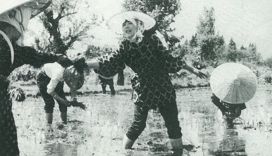 秋田に定着したわらび座は近くの農家で田んぼの仕事を手伝いながら、「たばこ」(休憩時間のこと)の合い間に踊りを教えていただきました。