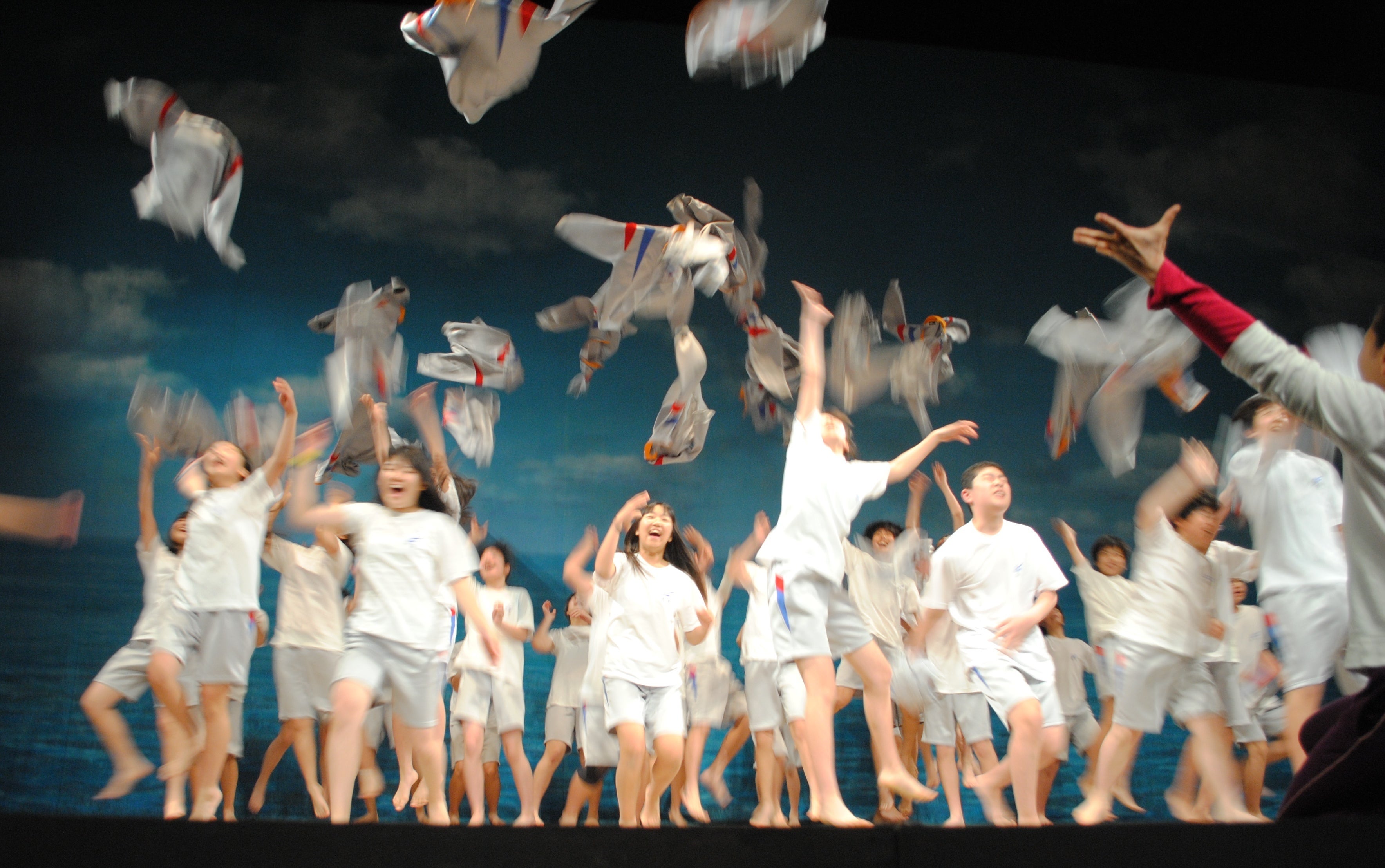 私たちは、民族芸能とは人と人が心と力を一つにする場で生まれるものであり、コミュニティに力を与えるものと考え、長年その精神を大事に人間が輝く舞台を創ってきました。わらび座の舞台をご覧になった先生たちが、子どもたちが舞台を鑑賞するだけでなく、それを体験し、熱く生きる大人たちに出会わせたい、というのです。