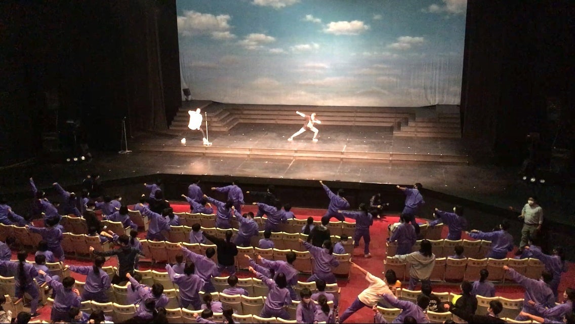 「ゴホン!といえば」を観劇後、劇場を使ってソーラン節の踊り教室。