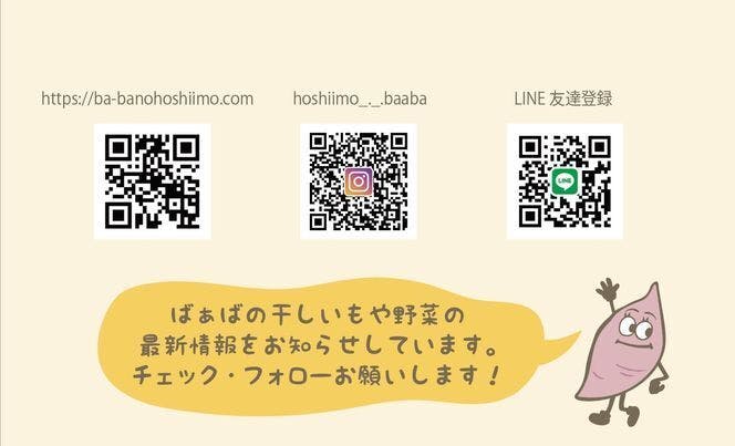 昨年の試運転の期間を経て、今年から本格的に「ばぁばの干しいも」の販売をスタートします。ここまでたどり着くことができたのはすべて、私が「やりたい!!」と言い出したことを、たくさんの方たちが支えてくださったおかげです。家族、友人、異業種交流会のみなさま…手伝ってくれたたくさんの方への感謝の気持ちでいっぱいです。
