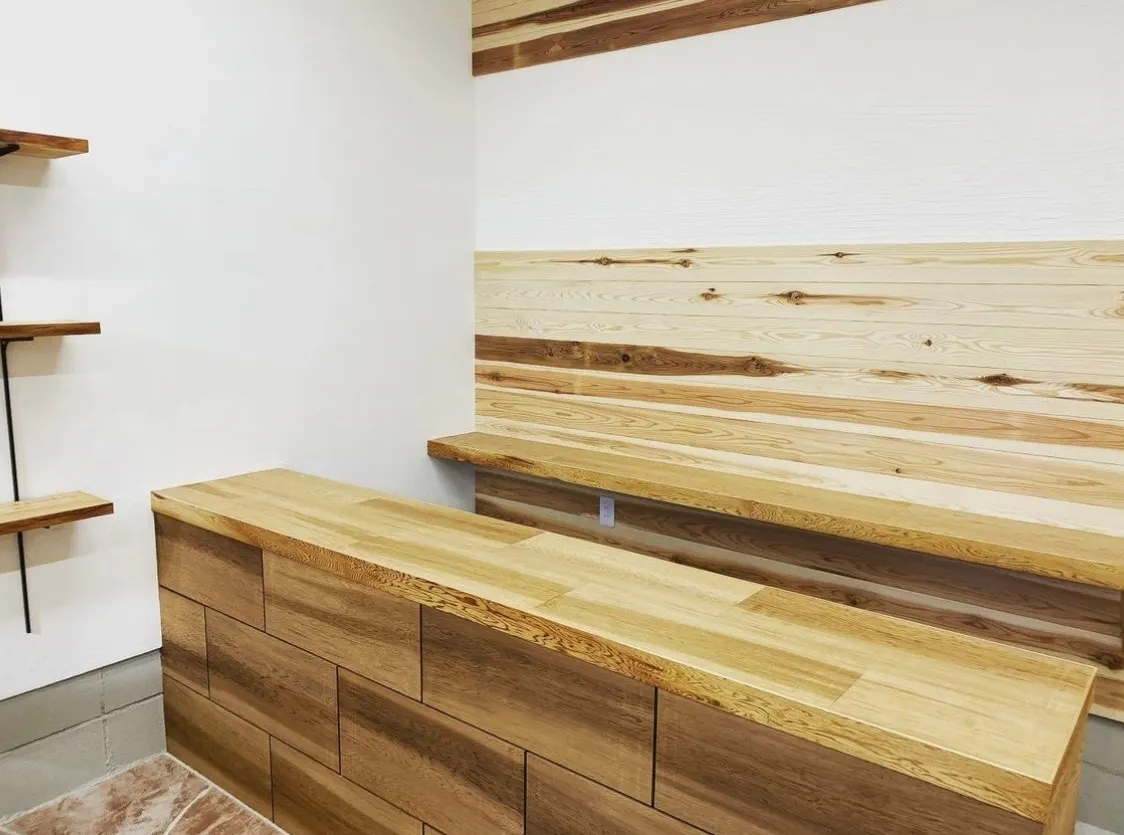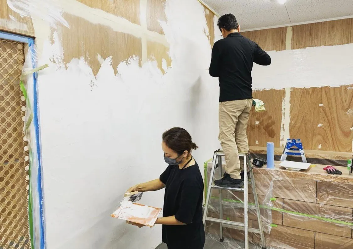 壁は、SANGOWALL様にお手伝いいただき、珊瑚からできた塗り壁に!