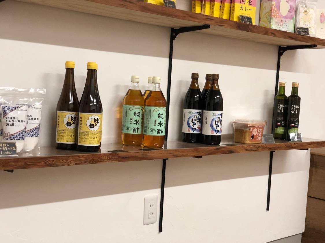 ここは、「ばぁばの干しいも」をはじめとして自然なものを販売する場所なので、なるべく自然な素材を使って仕上げたこだわりの場所。内部をご紹介しますね。
