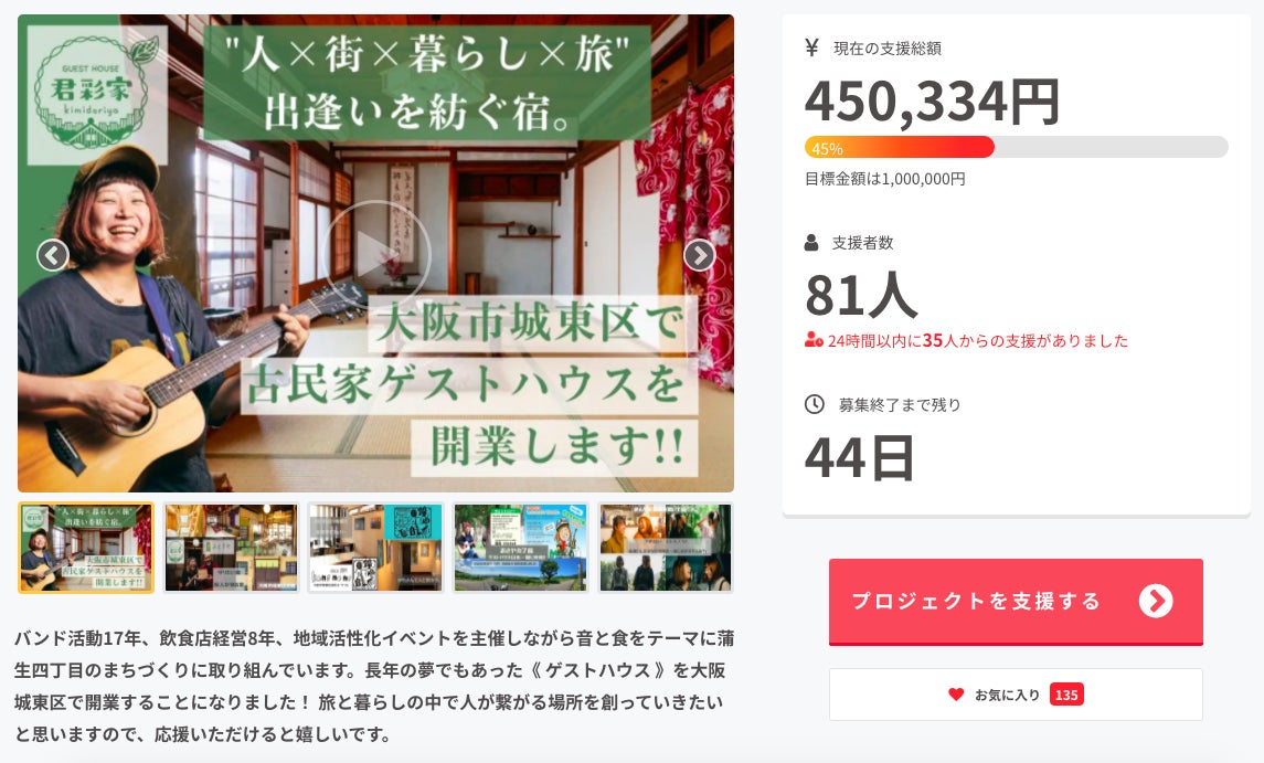 ご支援者数が80人を突破していて