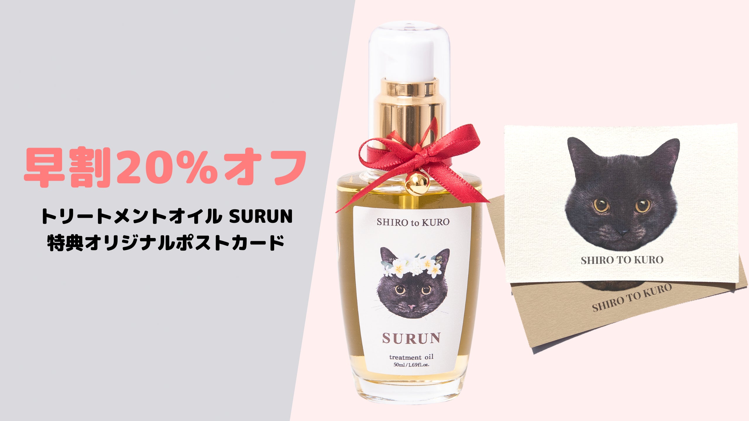 早割20%オフ ヘアオイルと猫のポストカードとお礼のメッセージ 先着10名