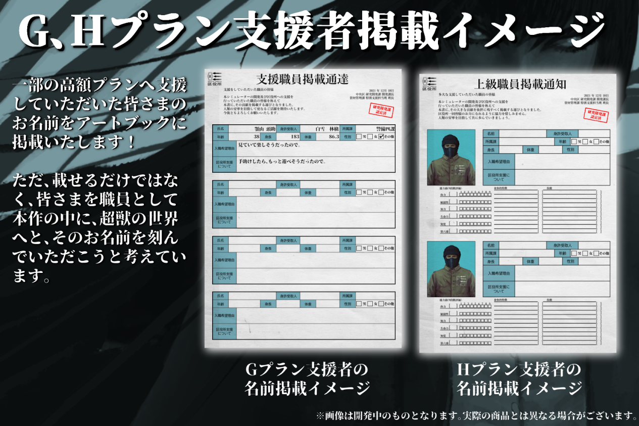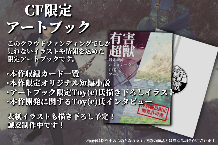 現開発段階でも十分に、皆さまのご期待するボリュームを実現できていると自負しておりますが、それでも、可能な限り多くの超獣を登場させ、この素晴らしい世界観の構築者であるToy(e)氏に対するペイバックを一層多く行いたいと考えた結果、このようなストレッチゴールを設けさせていただきました。