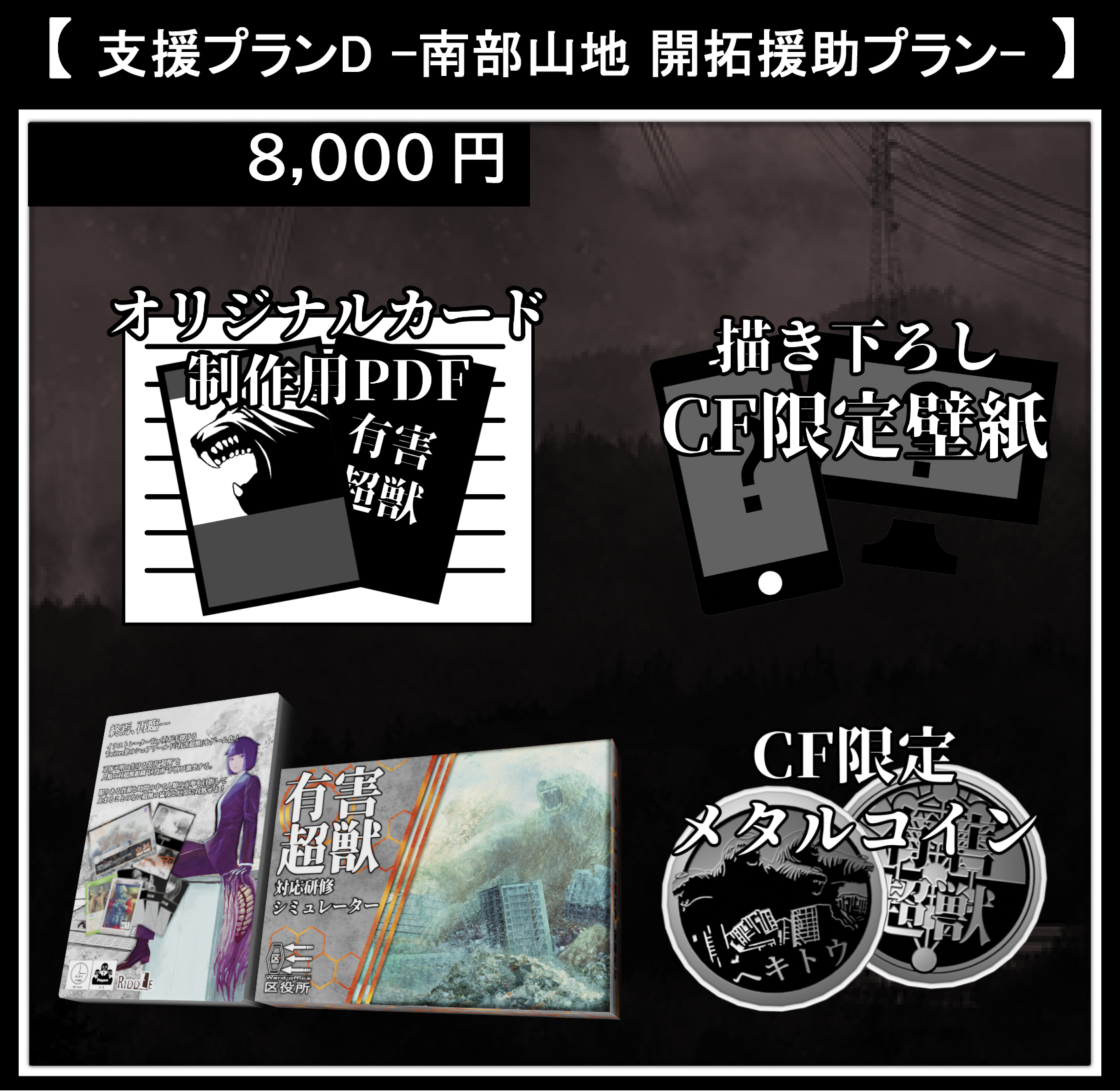 描き下ろし限定壁紙に本クラウドファンディングでのみ手に入るオリジナルグッズとして特別デザインのメタルコインを1つ加えたプランです。