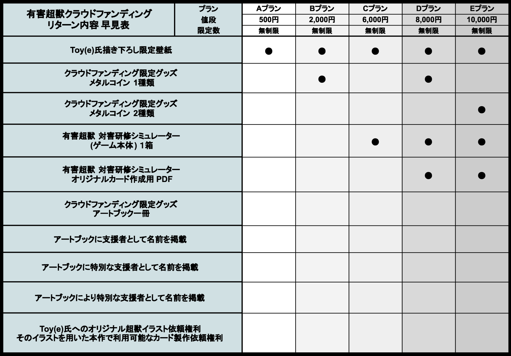 本製品の製造費に加え、クラウドファンディング手数料の支払い他、原作者であるToy(e)氏へのイラスト利用料やIP利用料に充てさせていただく予定です。支援金額)が大きくなるほどゲームサイズが拡張され、それに伴ってToy(e)氏への新規イラストの発注等が行えるようになります。