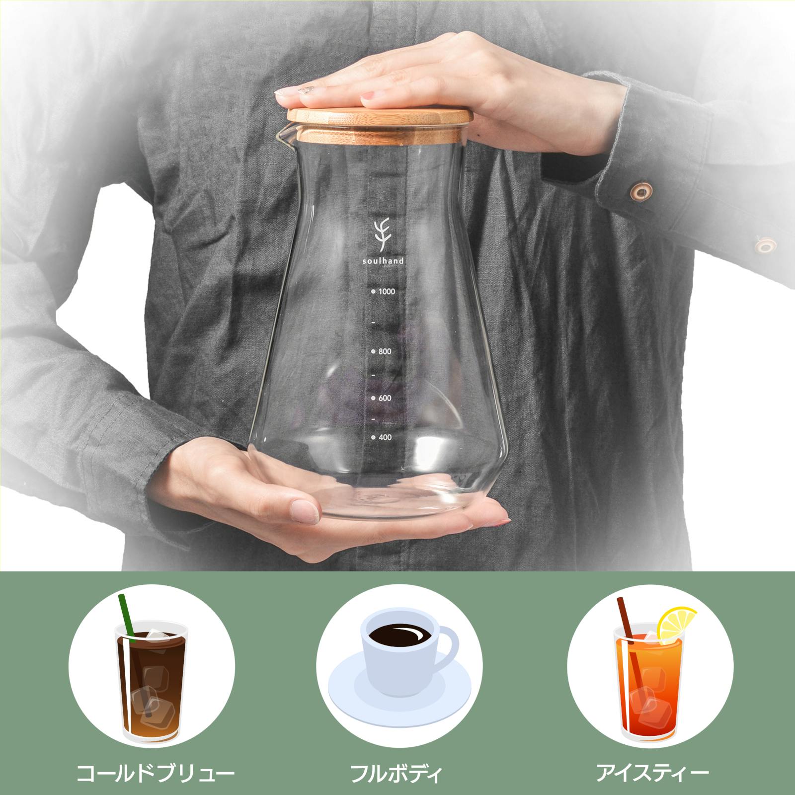 Soul handコールドブリューコーヒーメーカーは、コーヒー以外にも紅茶や緑茶も美味しく淹れられます。