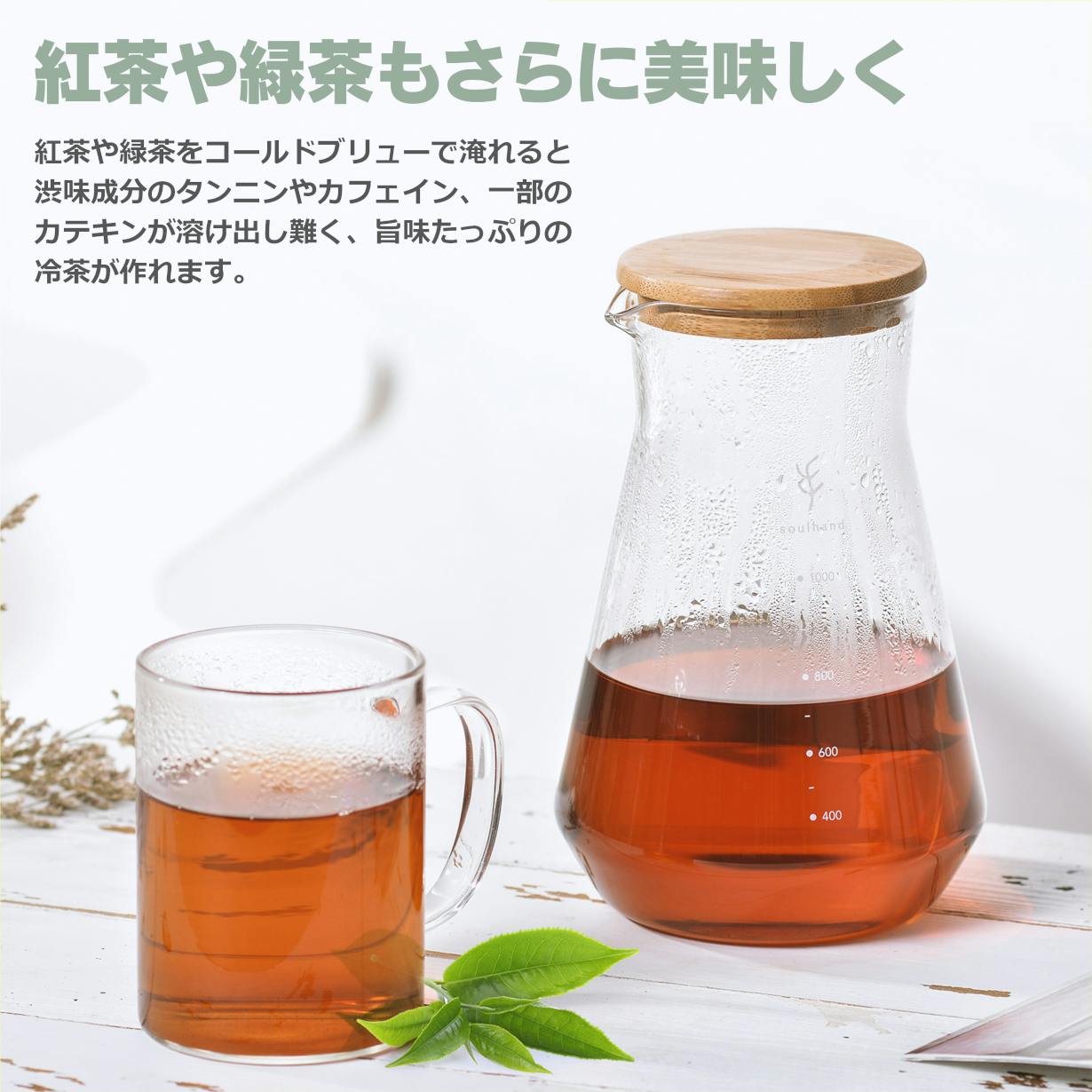 Soul handコールドブリューコーヒーメーカーでお茶を淹れると、苦味成分の抽出が抑えられ、とてもまろやかで美味しいお茶が作れます。