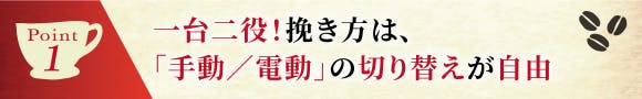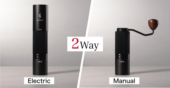 手動ミル・電動ミルの切り替えが可能な2WAY仕様なので、その時々の状況や気分によって、豆を挽く手法を選ぶことが可能。