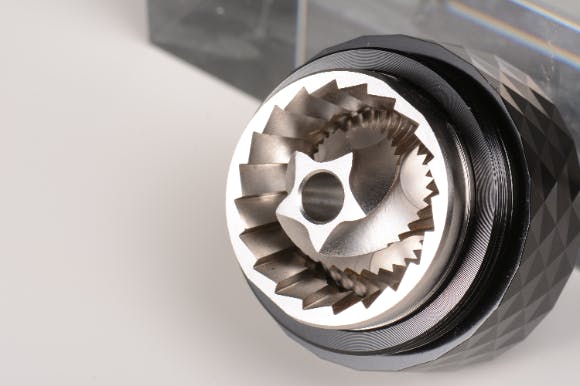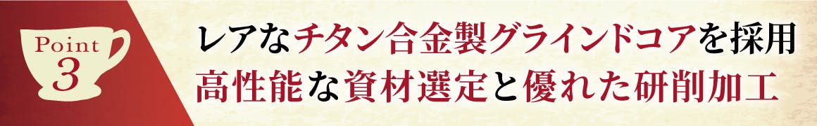最も注目すべきポイントは、CNCで切削加工した5枚刃のチタン合金製グラインドコアです。