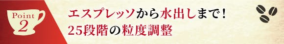 設定は1~25段階(数字が大きくなるほど、豆の粒度は粗くなります)までをオススメしております。 25段階の先まで回すことも可能ですが、豆が粗くなりすぎるのでご注意ください。