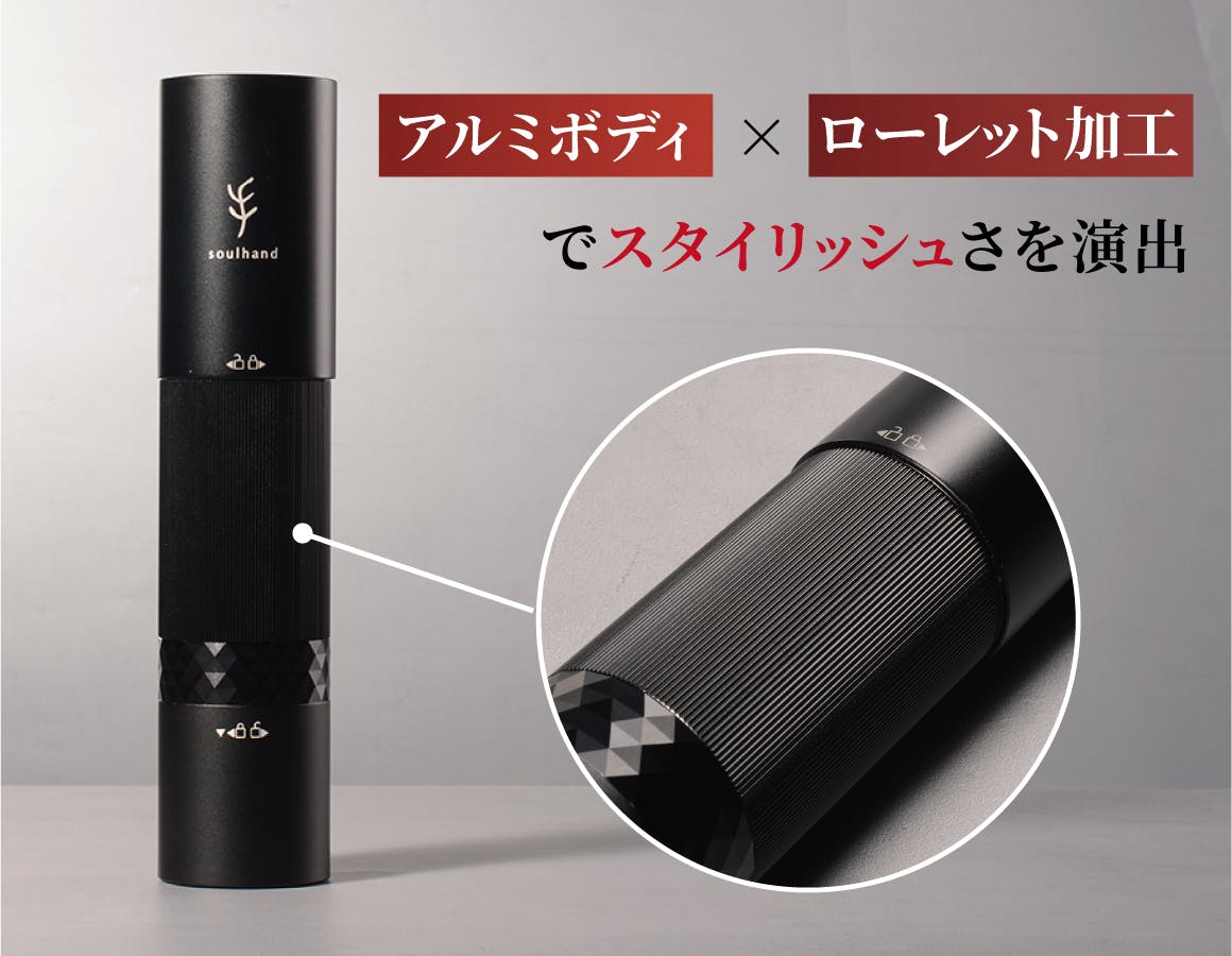 人間工学に基づくオリジナルのデザイン設計がされた『Soulhand 2-IN-1ポータブルコーヒーグラインダー』は、手動・電動のどちらでも豆が挽きやすい仕様です。
