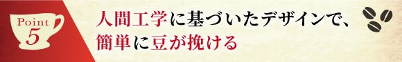 デザインはもとより、材質の選定や構造など、細部にわたってこだわりを追求しているため、抽出方法に合わせた挽き方ができるのはもちろん、豆の粒度を均一にすることができます。