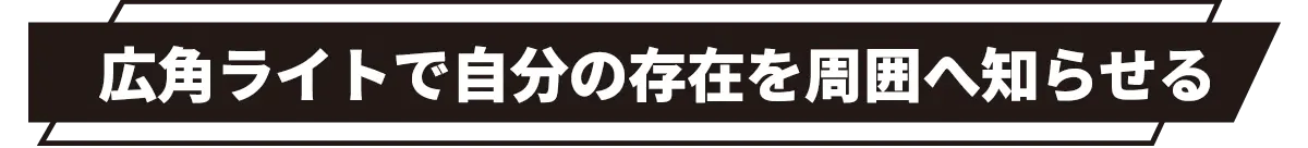 EVO21のワイドビームライトはどの角度からでも光り、近づいていることを周囲へ知らせます。