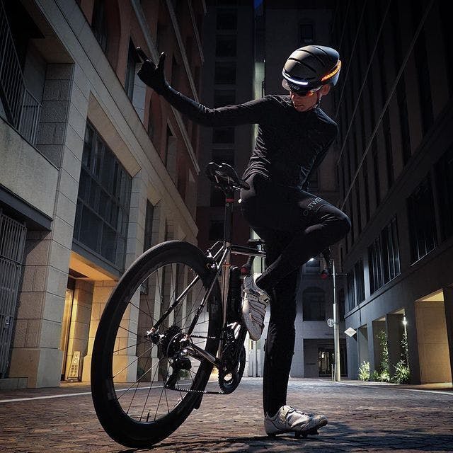 広角フロントライトと超高輝度270°リアライトがヘルメットに統合。長距離でも視認性を最大化。