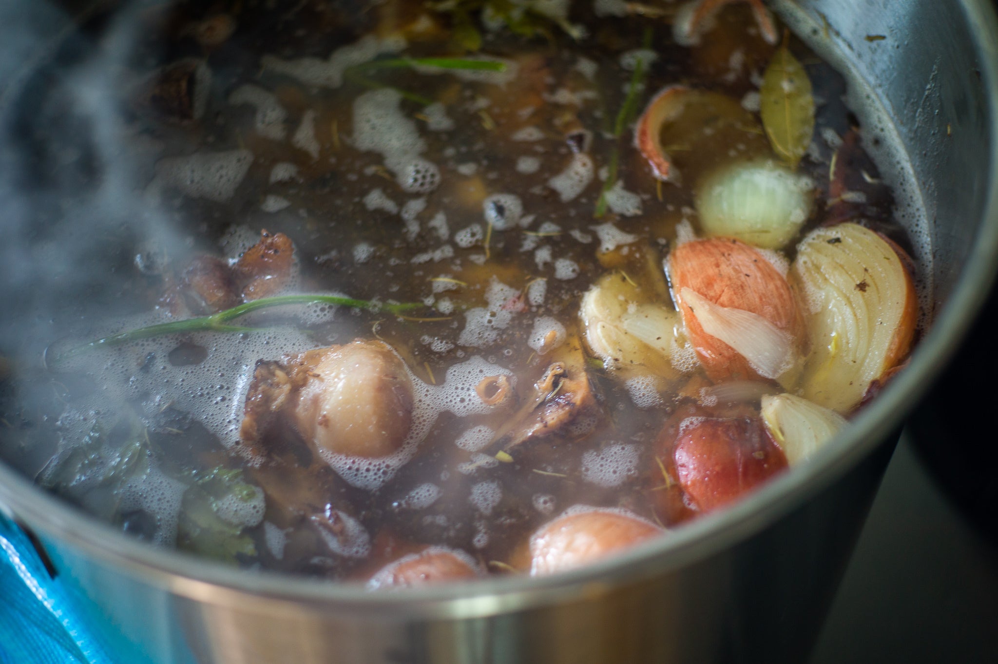 まず、牛の骨をオーブンでローストし、それと野菜とハーブを10時間以上煮込んで手作りでブイヨンを作ります。