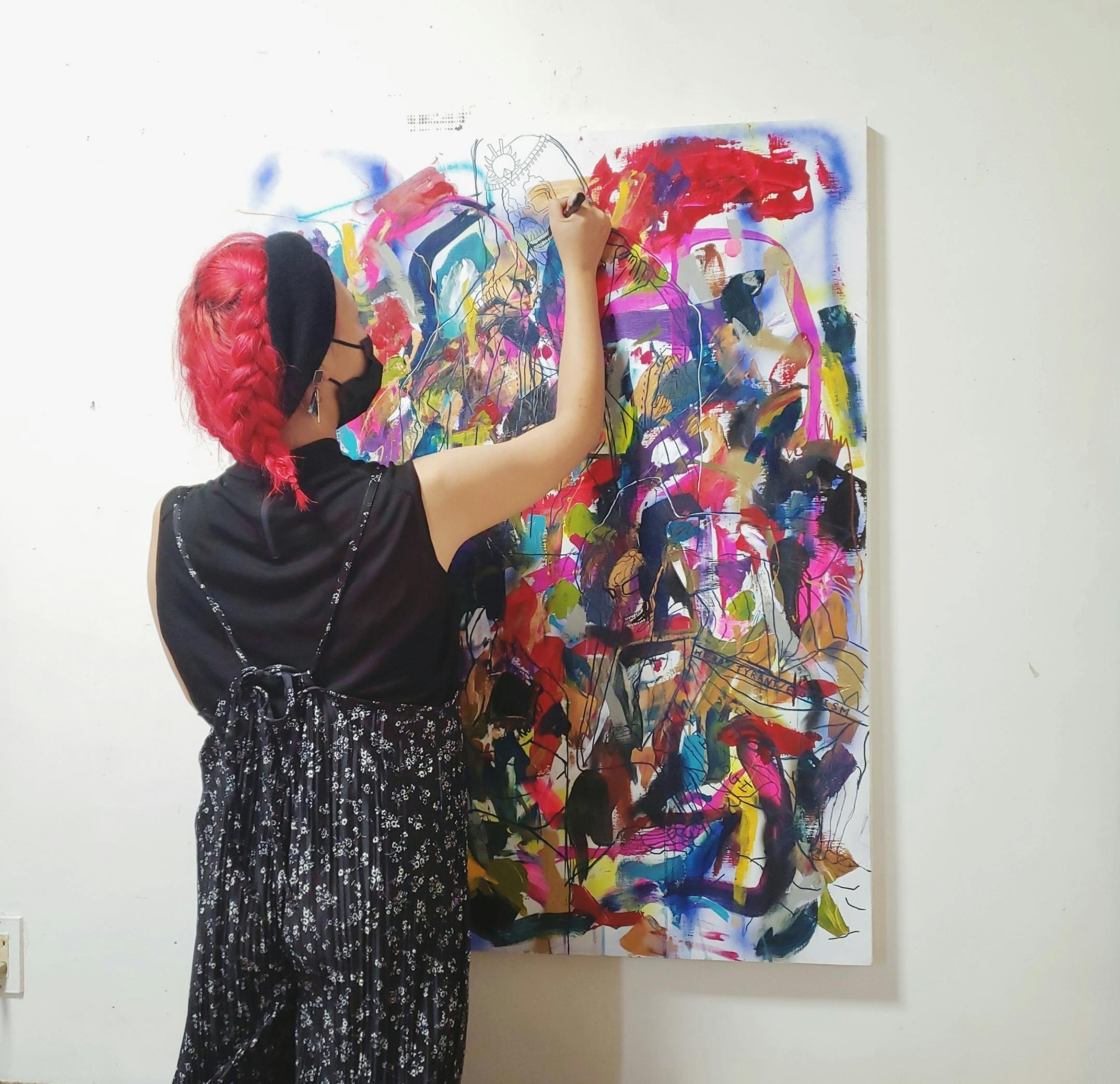 普段、オンライン古着屋を個人で運営しているのですがコロナ禍に入り服を買う人も激減、、収入が減り生活するにも画材を買うにもいっぱいいっぱいな状況で現在お世話になっているオンラインギャラリー様から画材代支援アーティストとして登録させて頂いている状態です。