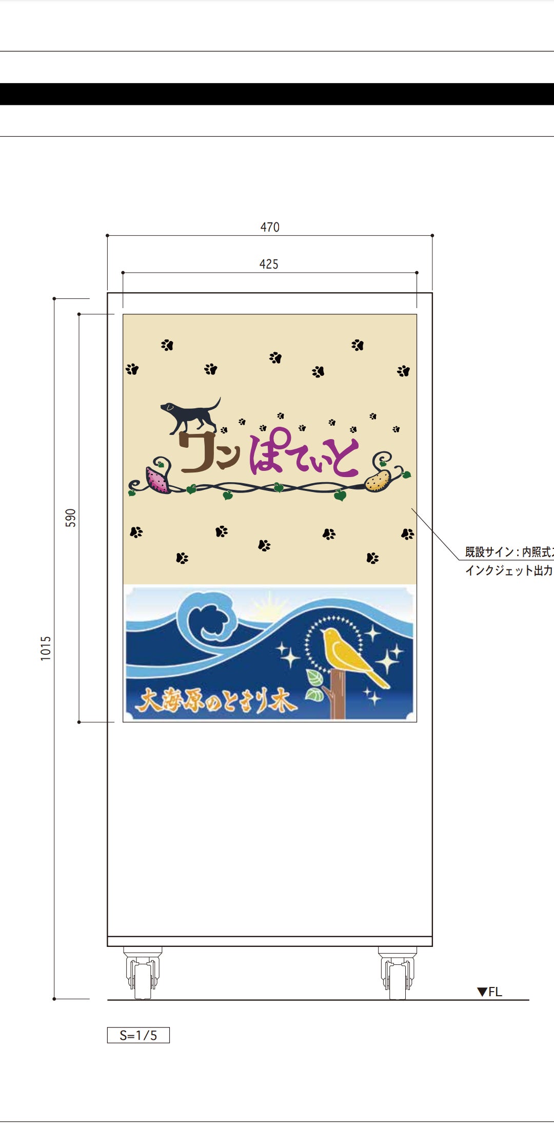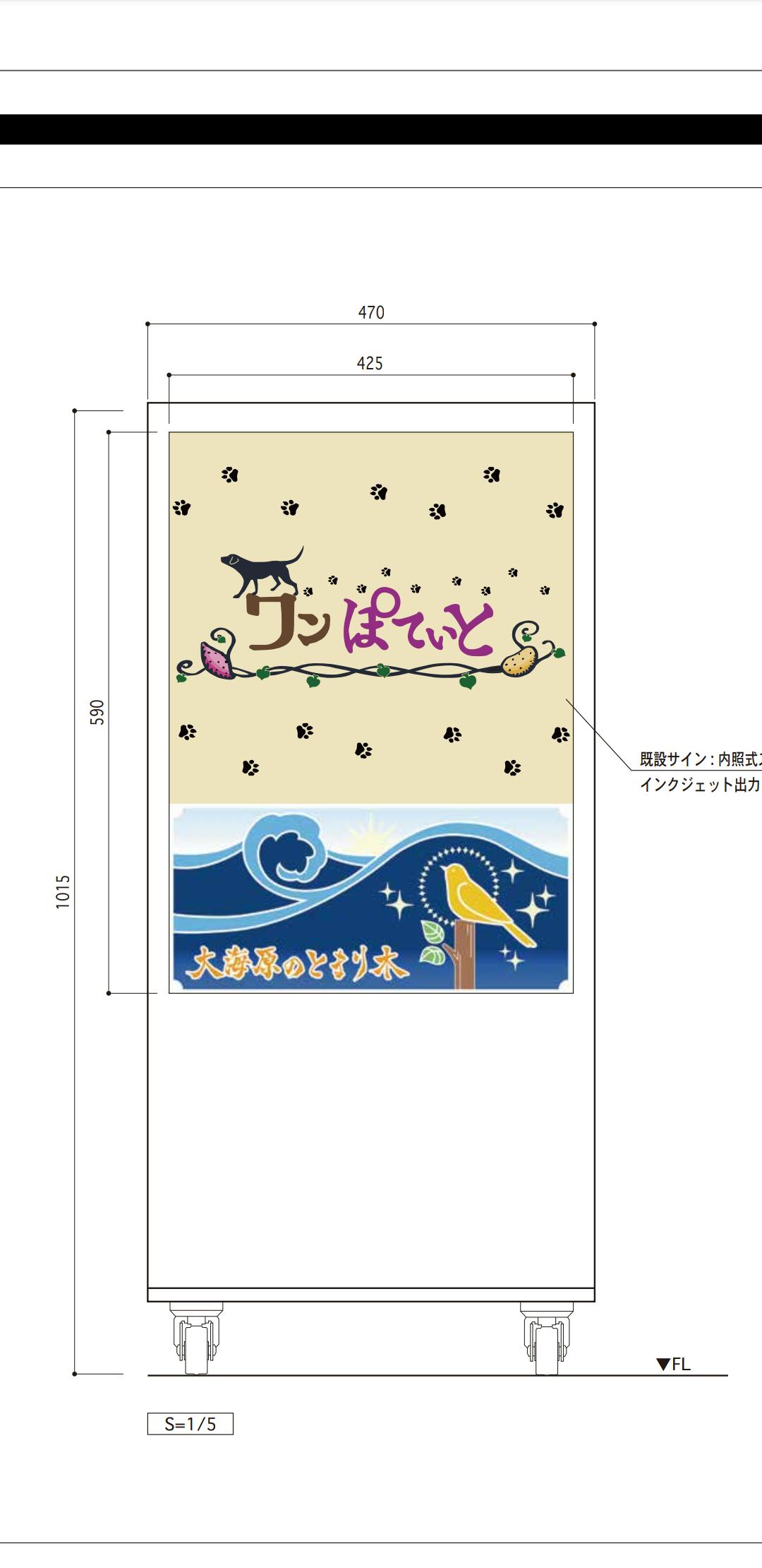店名「ワンぽてぃと」と、「大海原のとまり木」ダブルでつけました。