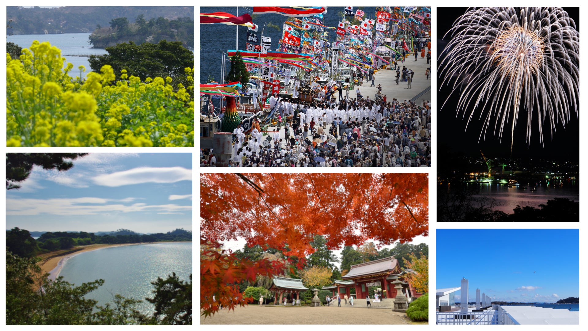 電車であれば仙台駅から最短で約16分、東京からは約120分とアクセスが良い立地にあります。日本三景・松島の一環をなす浦戸諸島の手つかずの景色や自然との共生の風景があり、春は菜の花、夏には海水浴やマリンスポーツ、四季を通じての釣りなど海や島を楽しむ多くの観光客が訪れています。その松島湾に面した天然の良港としての港町の風情、遠く平安時代からの歴史を持つ鹽竈神社など、様々な見どころがあるまちです。