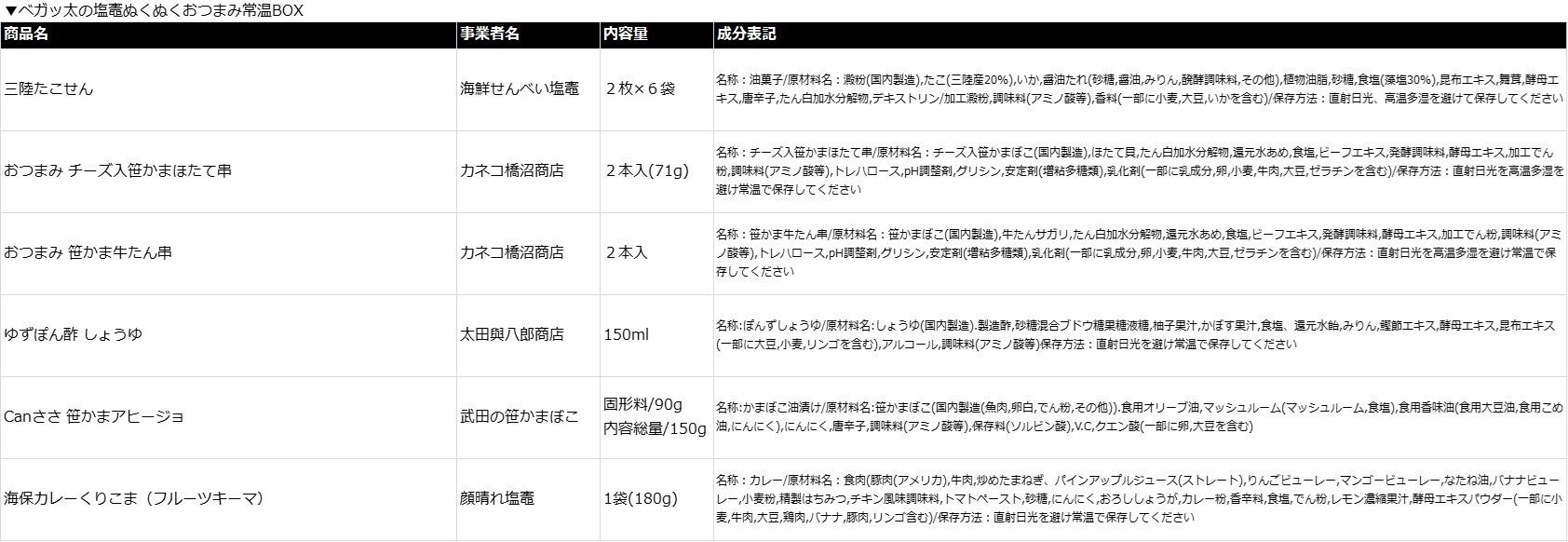 ・ベガッ太の塩竈ぬくぬくおつまみ常温BOX 1個