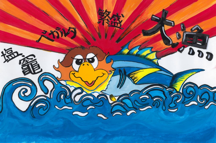 ・ベガッ太が描いたイラストステッカー(大漁旗デザイン) 1枚