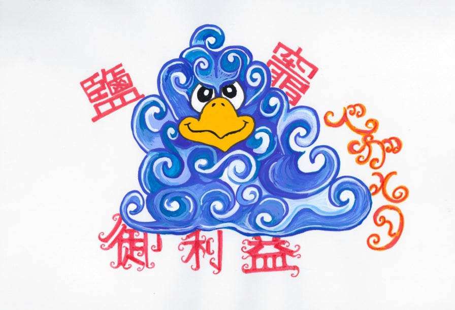 ・ベガッ太が描いたイラストステッカー(アマビエデザイン) 1枚