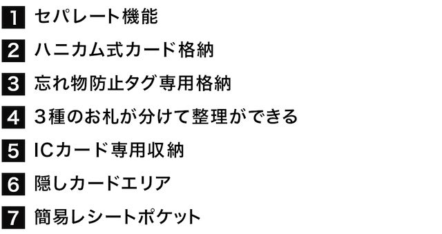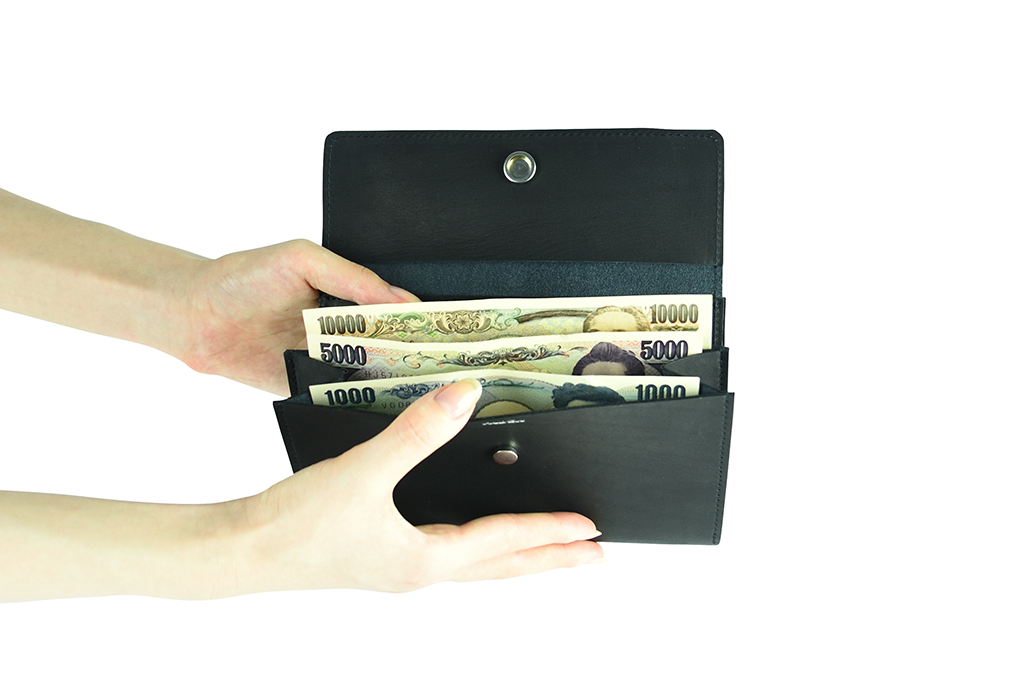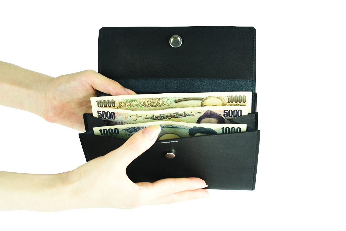 ※手前ポケットの方が大きいサイズのため、1万円札を多く入れる場合は手前に1万円札、前から二つ目のポケットに千円札を入れる必要がございます。
