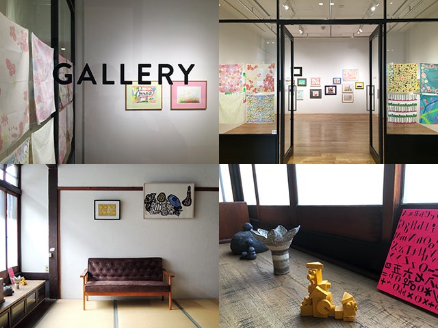 上段左右:「ART BRUT ハンカチーフ原画展」の様子(ワコールスタディホール京都)