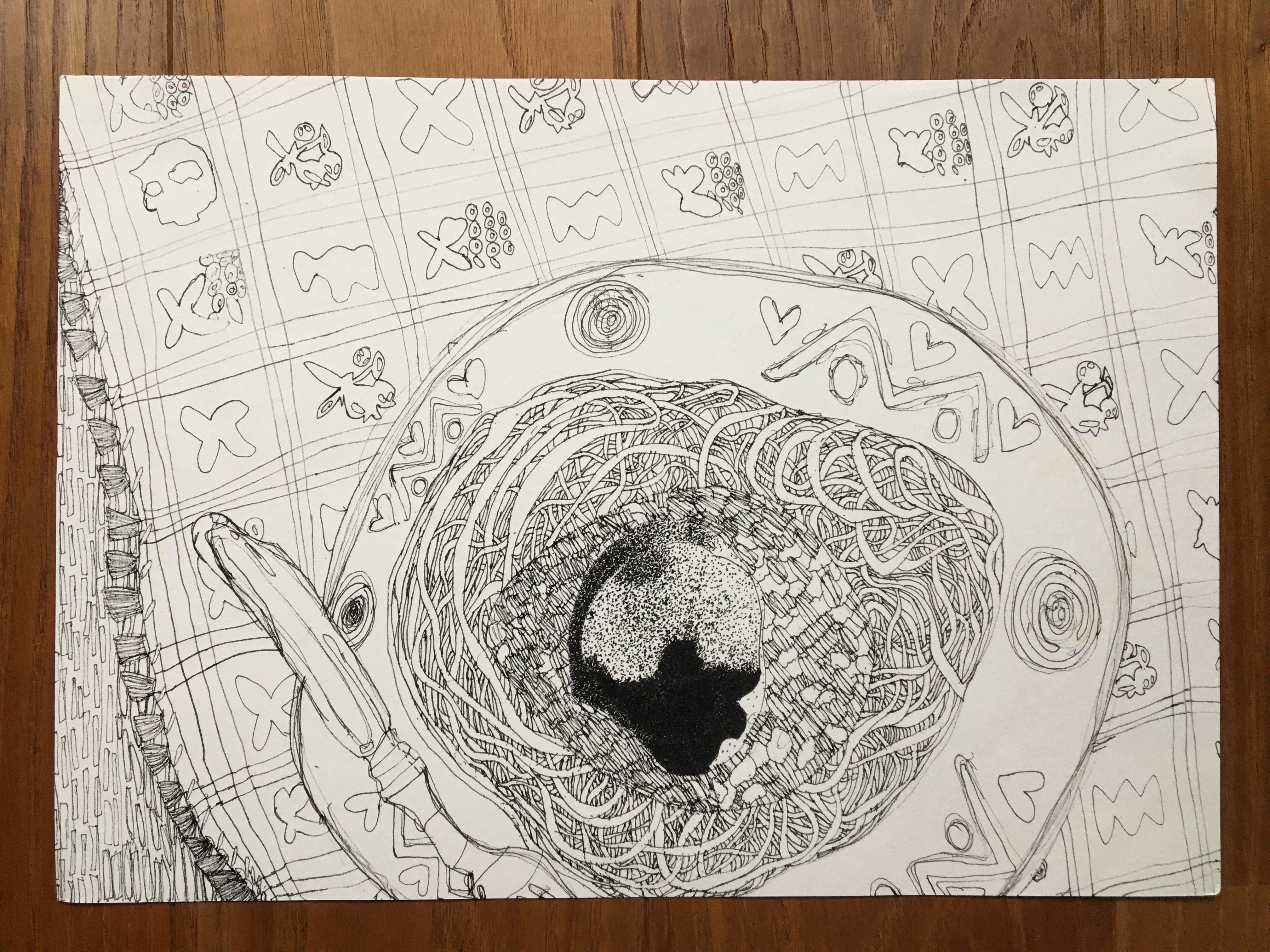 ⑦「スパゲティ」作品詳細…作者:等々力モニカ、サイズ:297mm×210mm、画用紙・ペン