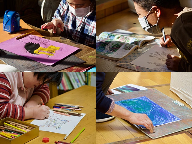 しかし一方、障害のある方の工賃については、長年、国を挙げて対策がとられているものの依然として低い水準を脱していません。令和元年度(2019年度)の就労継続支援B型事業所の全国平均工賃(賃金)は、月額16,369円、時給は223円です。(※3)企業からの下請け作業や公園清掃・施設管理などの役務提供、さらに自主製品作りなどが収入の柱となっていますが、アート活動を通して収入を得ることは更に難しく、専門家による支援が必要だと思われます。