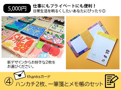 「one more ハンカチ」(ギフト分)もお好きなデザインをお選びください。