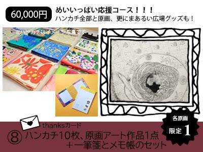 今回のクラウドファンディングプロジェクト終了後、2022年春から夏にかけて、ハンカチ原画展覧会の開催を予定しています。このリターンでご購入いただく作品も展覧会で展示するため、展覧会終了後のお届けとさせていただきます。