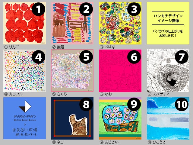 今回、まあるい広場に通う障害のある方のアート作品を原画にしたオリジナルハンカチを製作し、障害者アートの魅力を一人でも多くの方々にお届けしたいと思います!