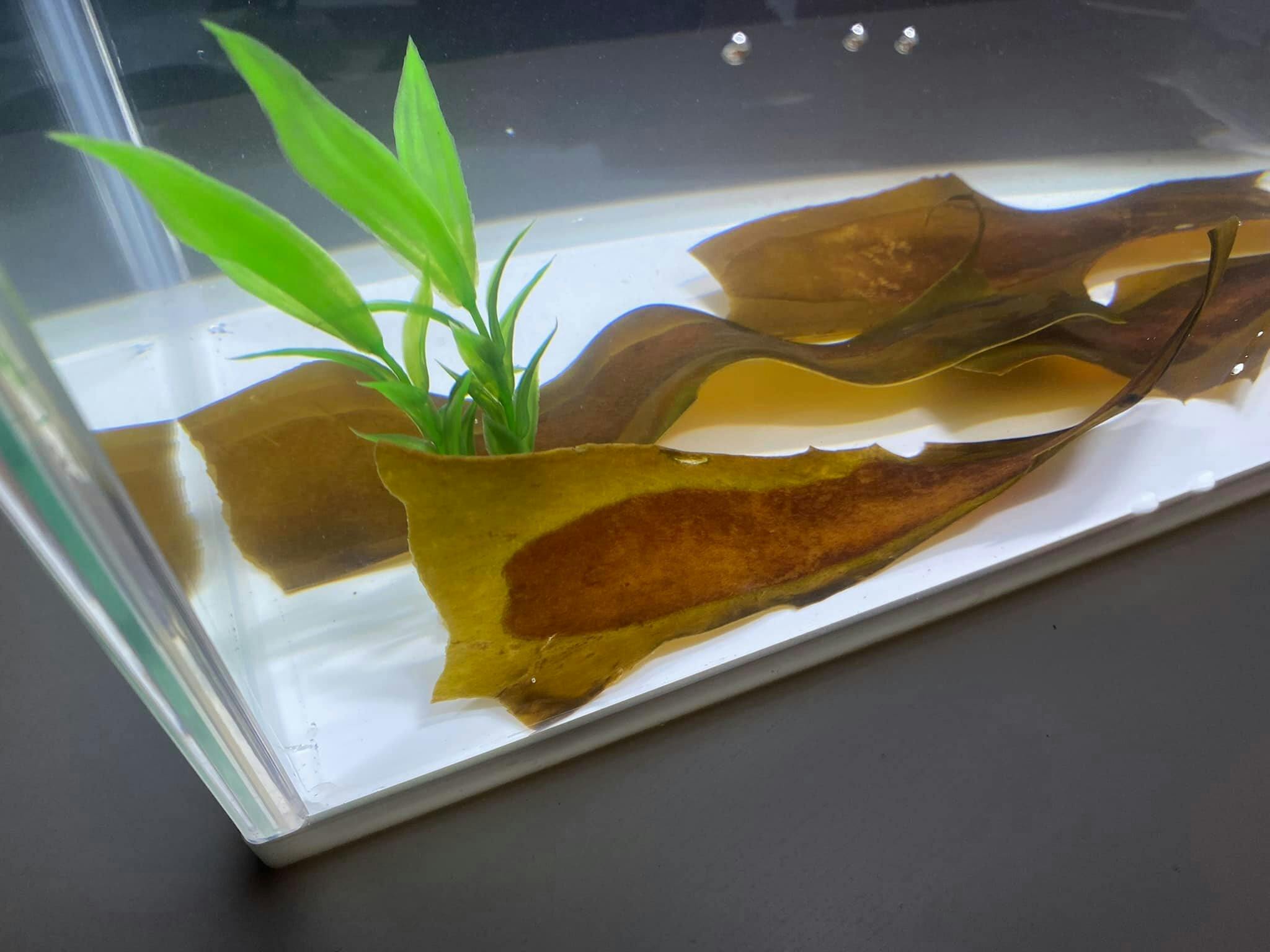 10時ぐらいから右奥のカジメあたりの海水が茶色く濁ってきています。これがカジメのタネ(遊走子)でしょうか...?! 顕微鏡では確認できていませんので確証はありませんが、直後と13時間後を比べると13時間後のほうが水槽の底が茶色くなっています。
