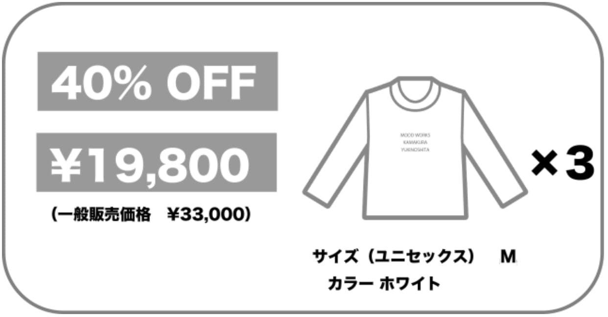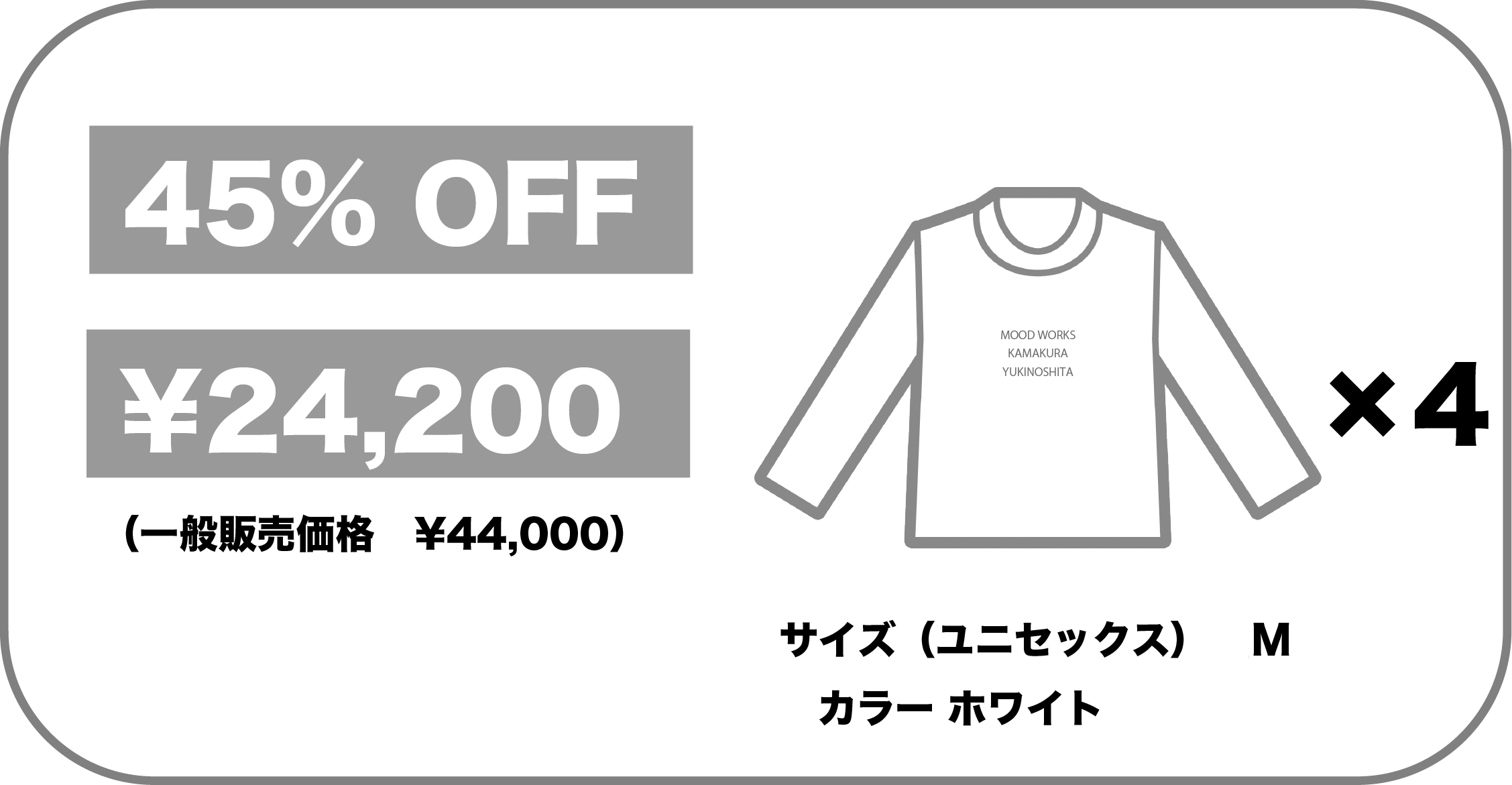私たちはこのMOOD WORKS鎌倉がお送りするロンT を出来るだけ早くお届けできるよう、生産体制および原材料の調達に全力を注いでおります。 しかしながら、開発工程や原材料の調達など市場の情勢によっては、一部仕様の変更やお届けに遅れが出てしまう場合がございます。 また、そのほかページに記載している内容に変更がある場合は、出来るだけ早く活動レポートなどで共有を行なっていく予定です。 最後に、このプロジェクトにご参加いただいた皆様に喜んでいただけるよう、スタッフ一同心を込めて対応していきますので、応援よろしくお願いいたします。
