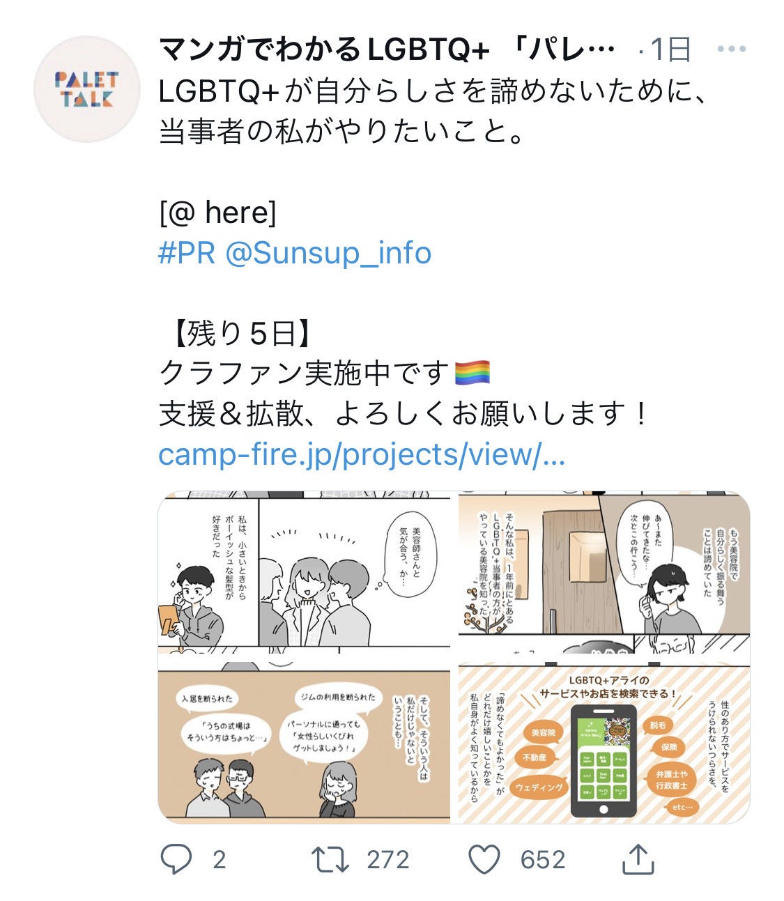 「性にまつわるモヤモヤ」をマンガで読み解くメディア『パレットーク』に、LGBTQ+ライフスタイル情報アプリ『@ here』をご紹介いただきました!!