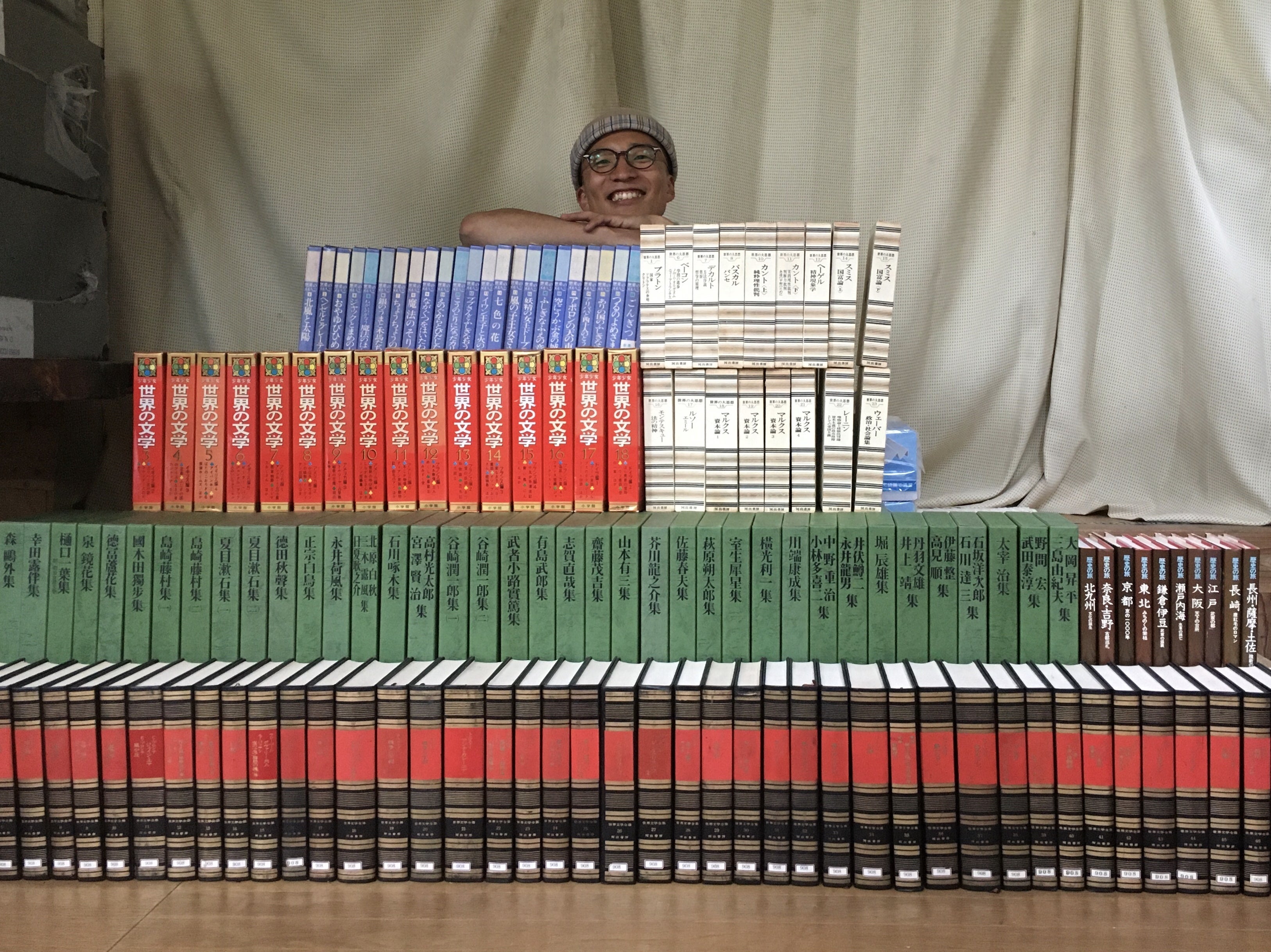 大量の寄贈本とともに