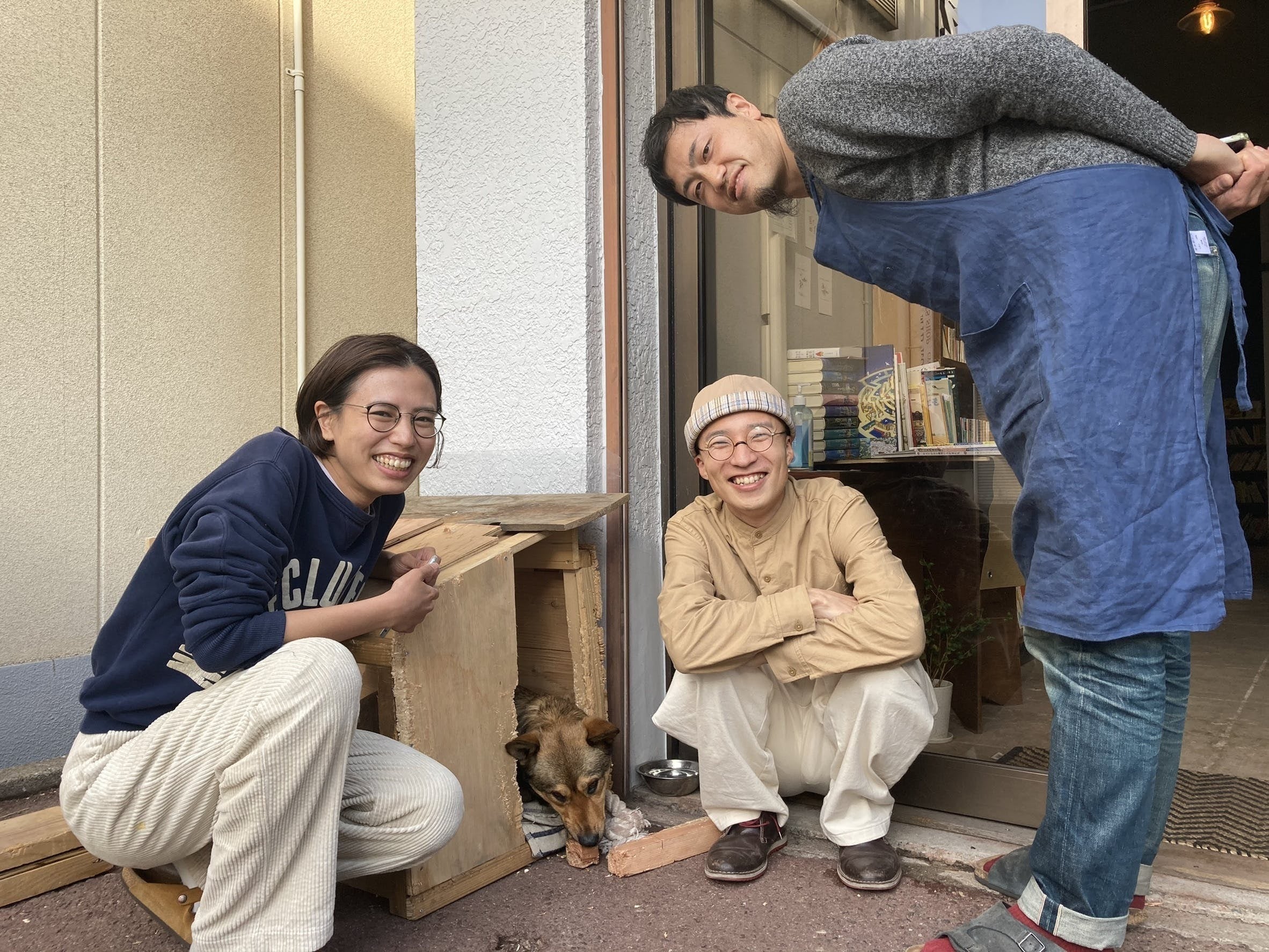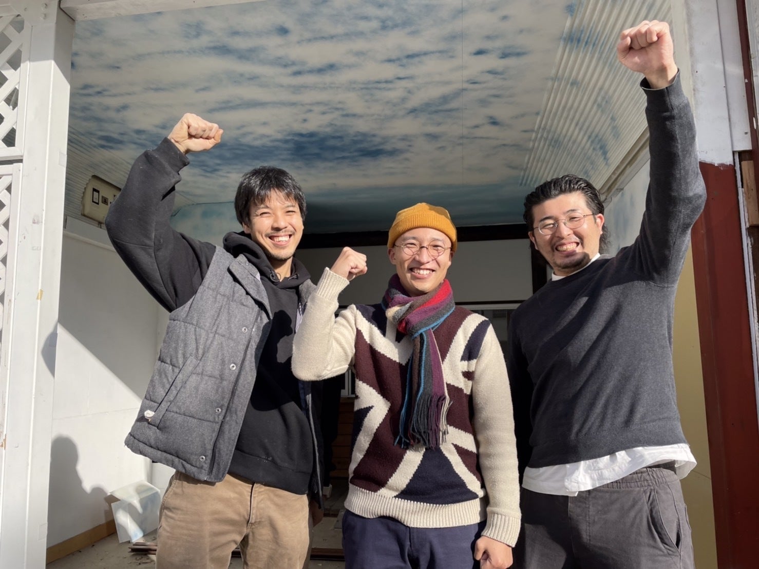 左:内装工事をしてくれるSoiroLiving・川端さん 中:私設図書館もん・土山 右:建築家・植村さん